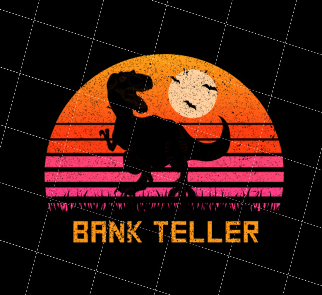 Retro Vintage Bank Teller Dinosaur Sunset Gift Png, Dinosaurious Lover, Png Printable, Digital File