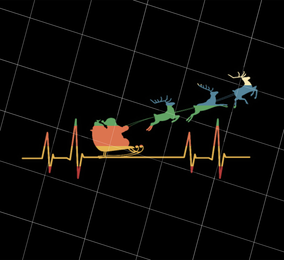 Retro Heartbeat Santa With Deers Png, Reindeer Png, Santa Claus Png, Silhouette Santa Png, Merry Christmas Png, PNG Printable, DIGITAL File