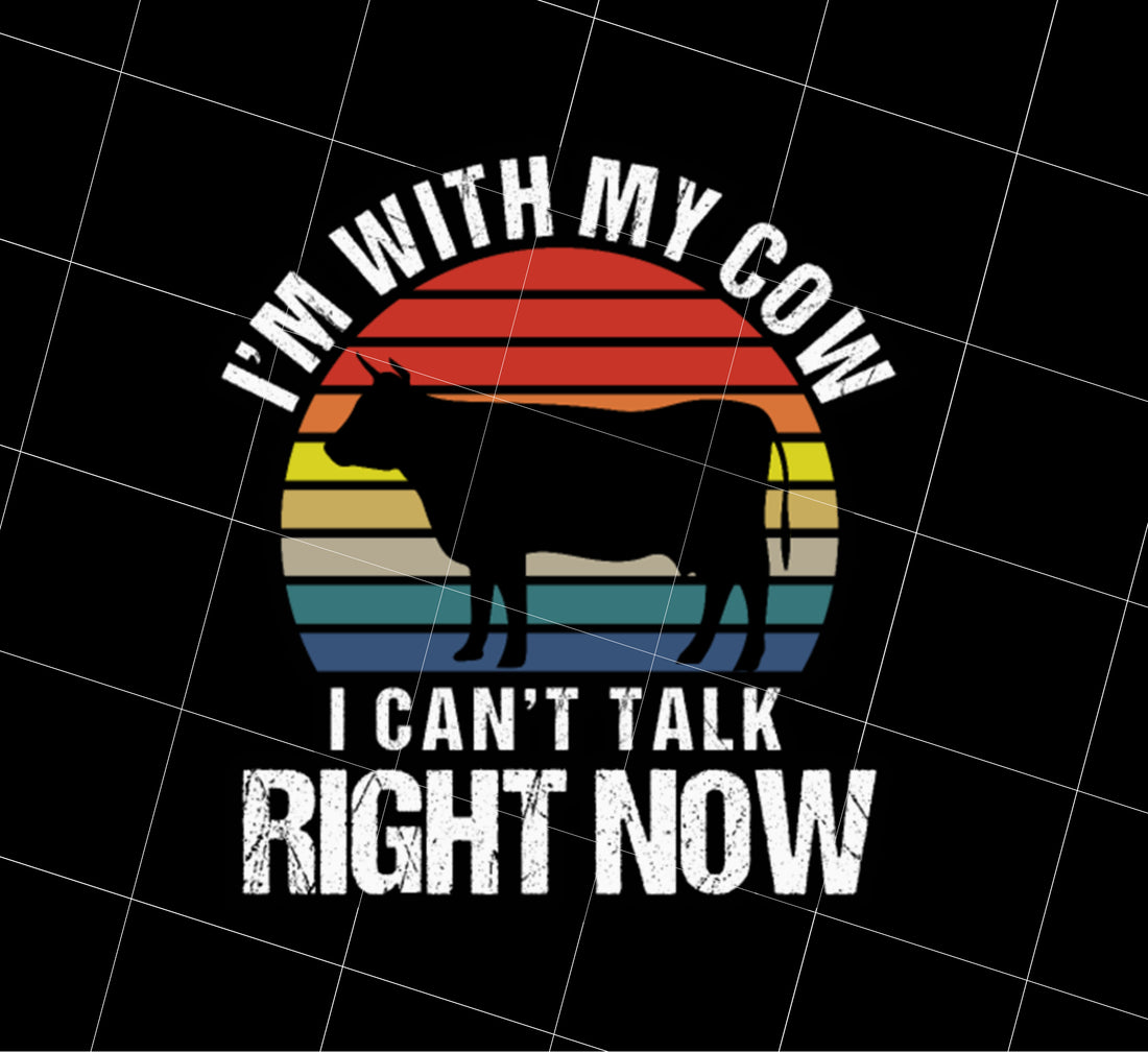 Retro I Am With My Cow I Cannot Talk Right Now Gift Png, Love My Cow Png, Cow Silhouette Retro Png, Best Gift, Png Printable, Digital File