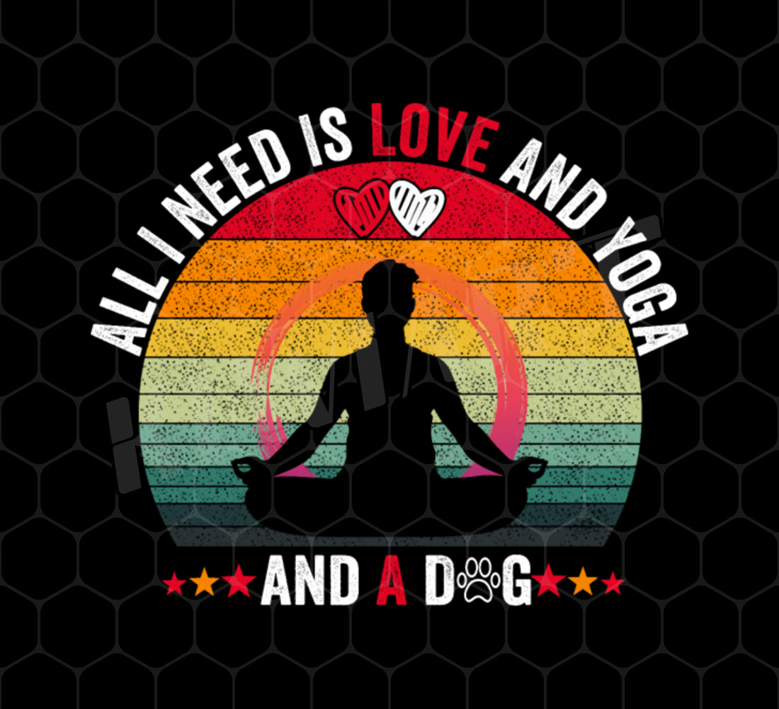 Yoga Lover Gift Png, Retro Gift Png, All I Need Is Love And Yoga And A Dog Png, Yoga And Dog Lover Png, Png Printable, Digital File