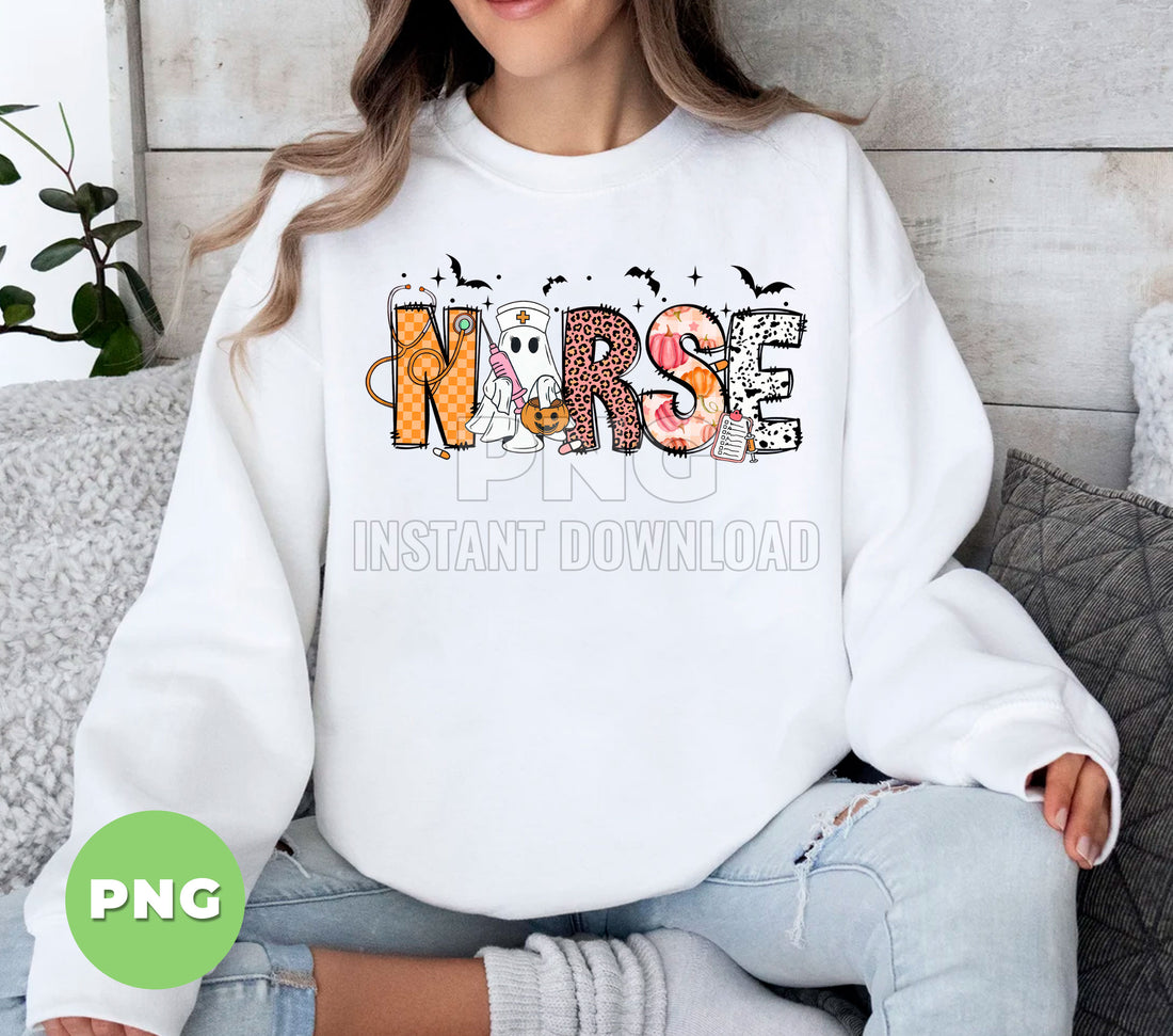 Halloween Nurse PNG, Ghost Nurse Sublimation, Spooky Nurse Leopard Pumpkin, Funny Nurse Clipart, Cute Halloween Medical Nurse