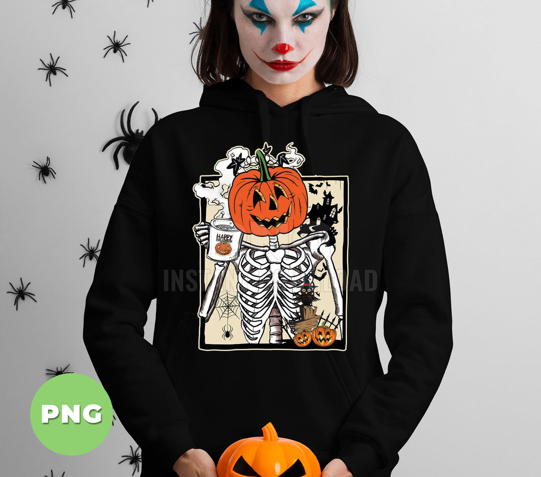 Pumpkin Head Skeleton, Halloween Coffee Mug Sublimation, Spooky Gothic Clipart, Fall Skeleton Pumpkin Art, Creepy Cute Vintage