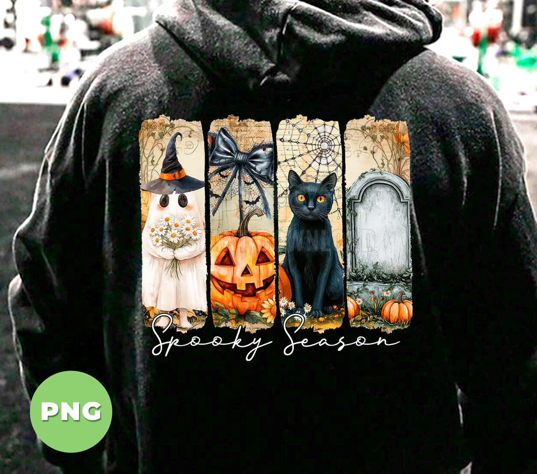 Spooky Season PNG, Halloween Ghost Cat Pumpkin Graveyard Sublimation, Fall Gothic Clipart, Witchy Black Cat Retro Vintage Aesthetic Digital Download