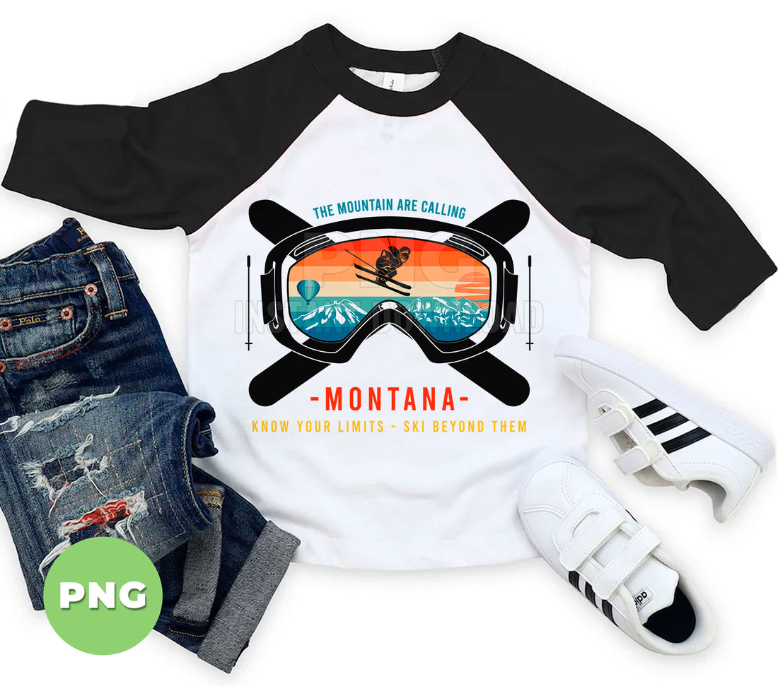 Skiing PNG, Montana Ski Goggles Clipart, Retro Snowboard Winter Sports Sublimation, Extreme Ski Jump Sunset Mountains Digital Download