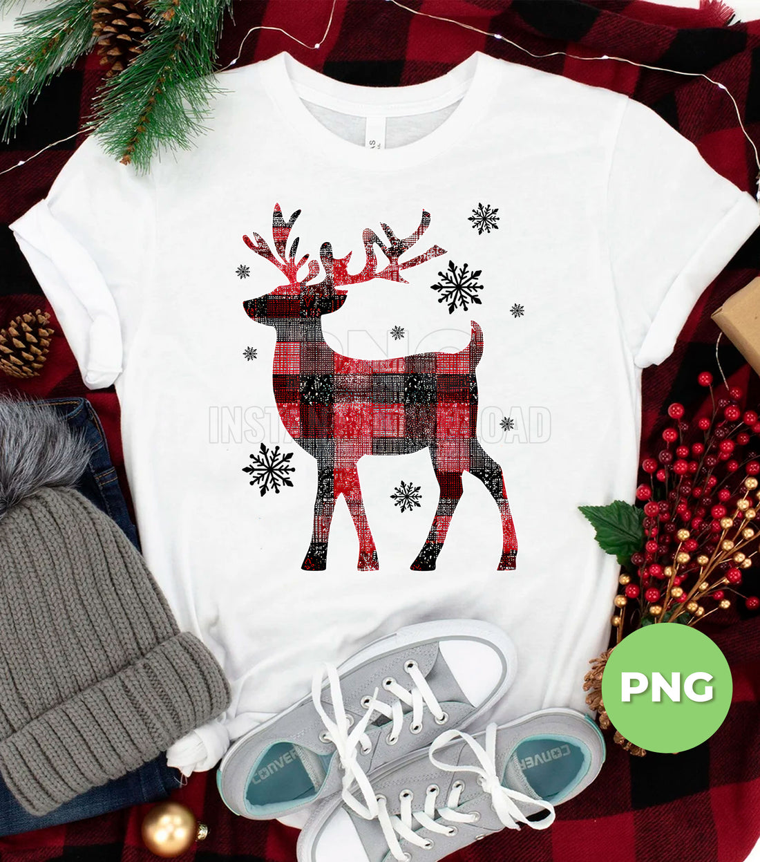 Deer Plaid Reindeer PNG, Christmas Deer Sublimation Design, Red Black Plaid Animal Clipart, Rustic Holiday Snowflake Graphic, Merry Xmas