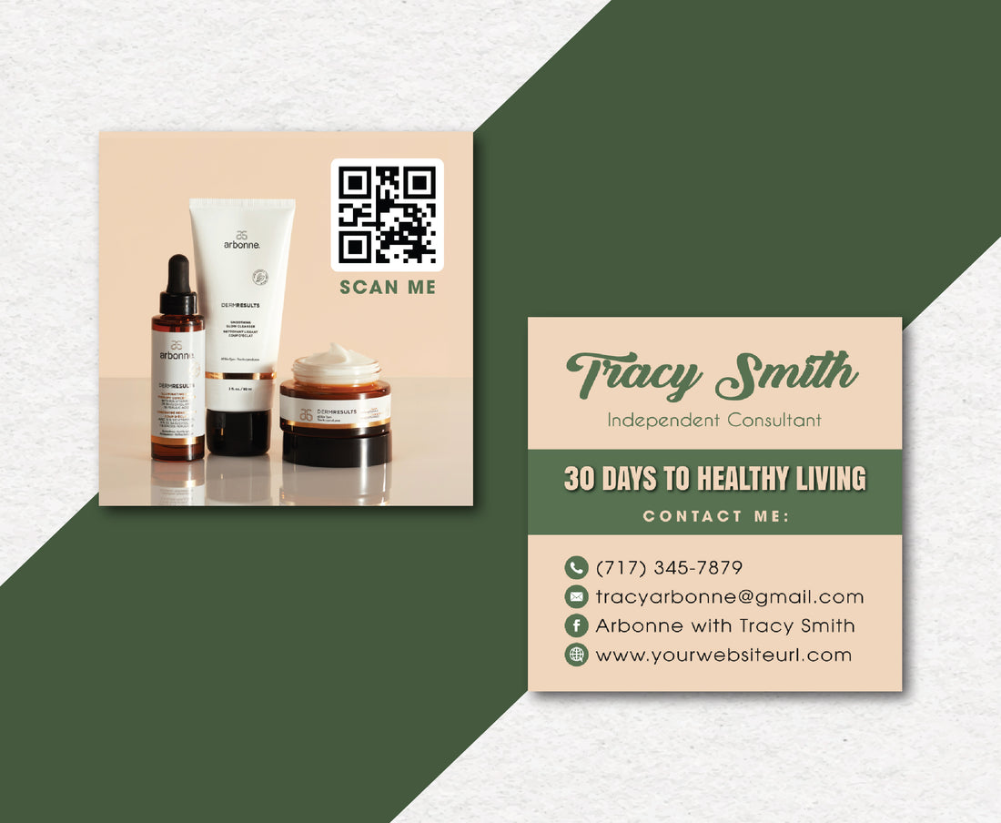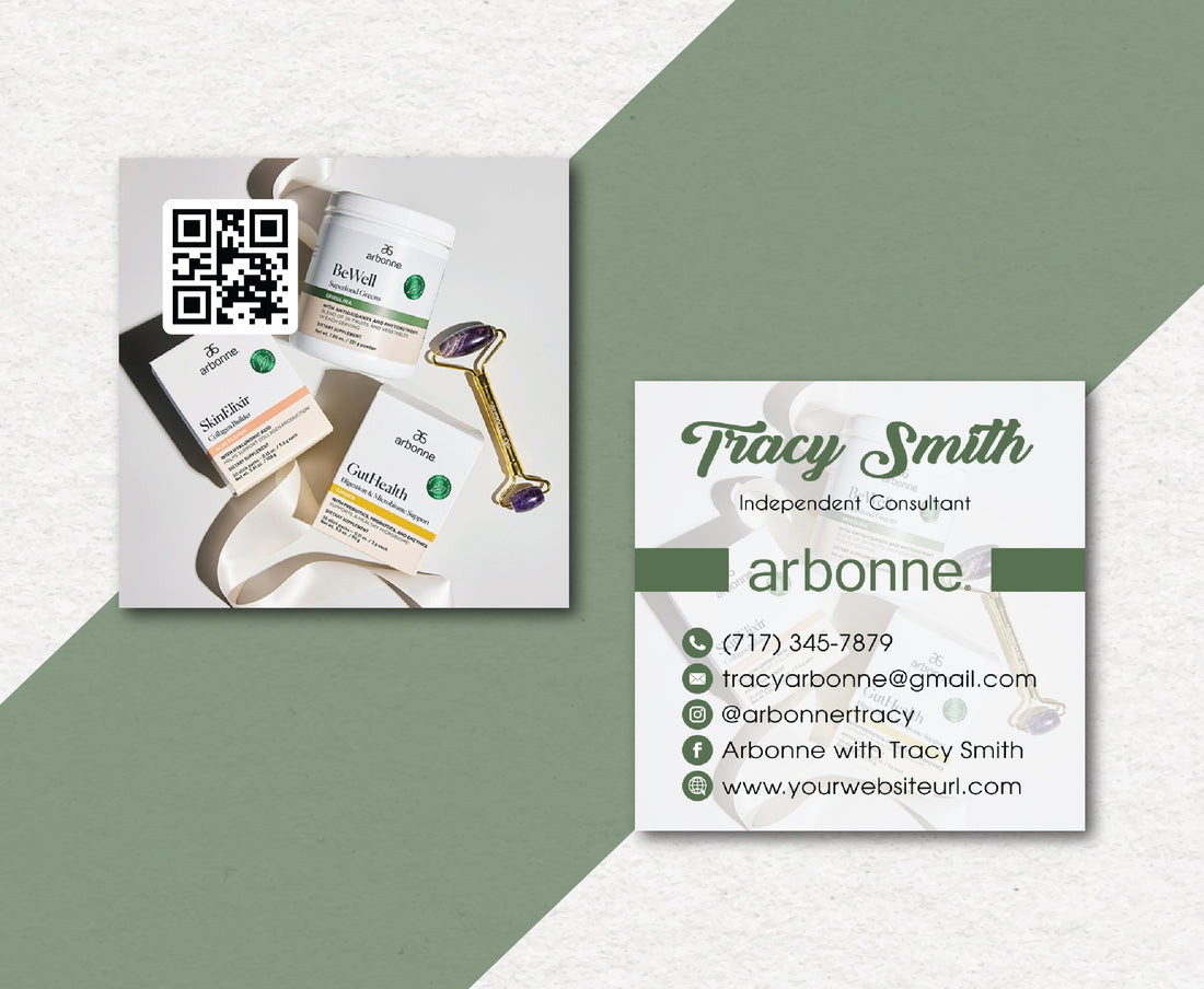 Arbonne Business Square Card QR Code, Personalized Arbonne Business Cards AB173