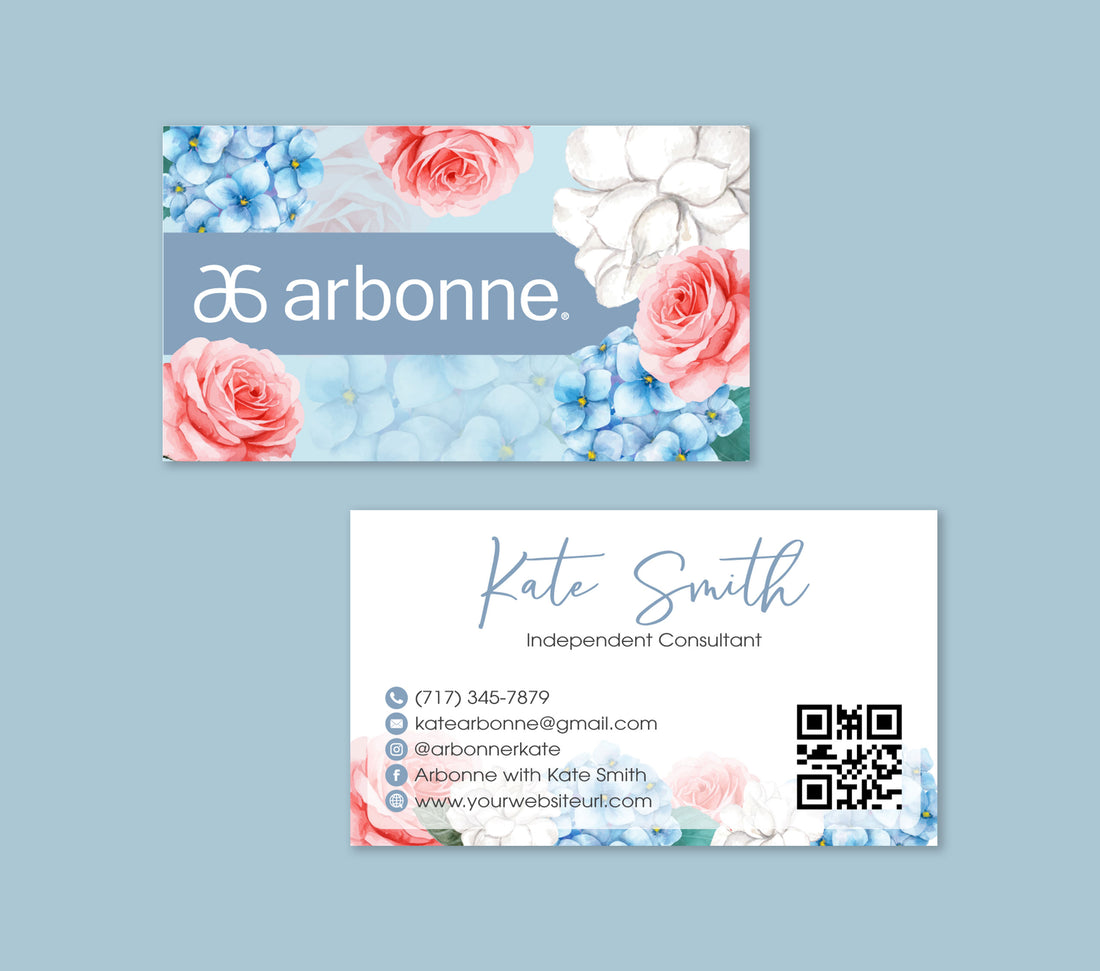 Arbonne Flower Business Card QR Code, Personalized Arbonne Business Cards AB185