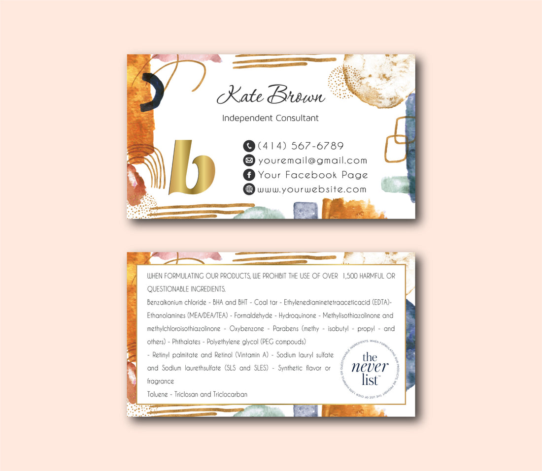 Beautycounter The Never List Cards, Personalized Beautycounter Business Cards BC11
