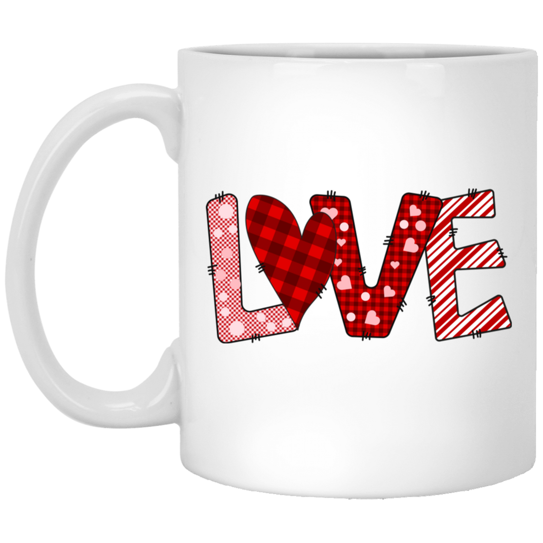 Love Text, Heart Pattern, Groovy Love, Valentine Gift, Valentine's Day, Trendy Valentine White Mug