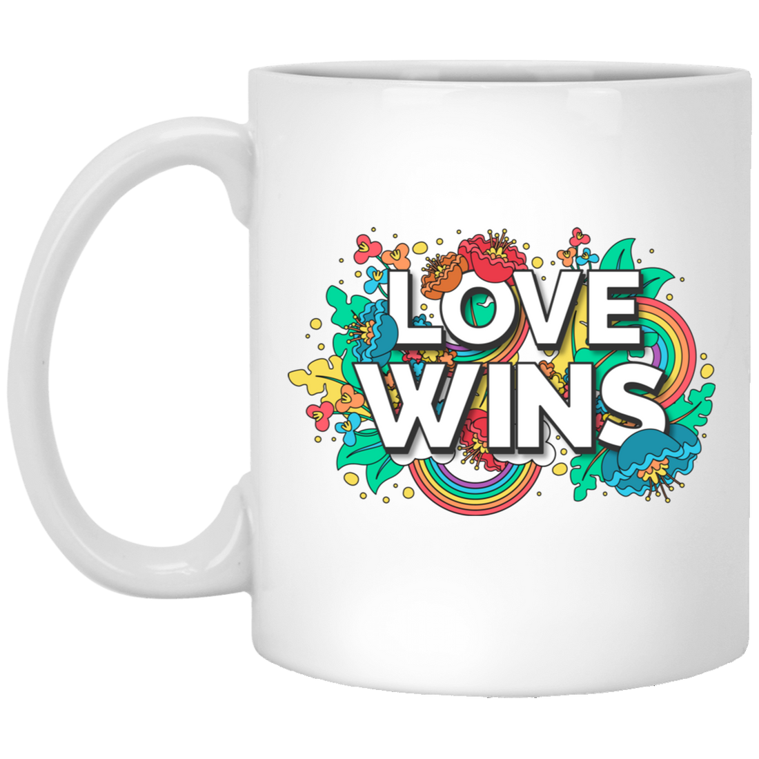Love Wins, Rainbow Love, Flower Love, Colorful Love White Mug