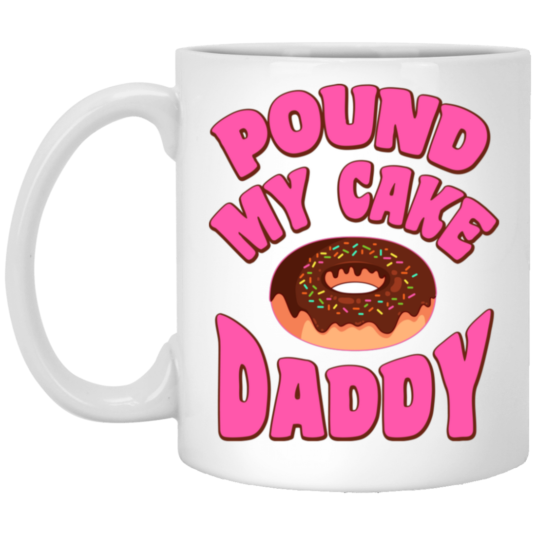 Pound My Cake Daddy, Love Daddy, Pink Doughnut White Mug