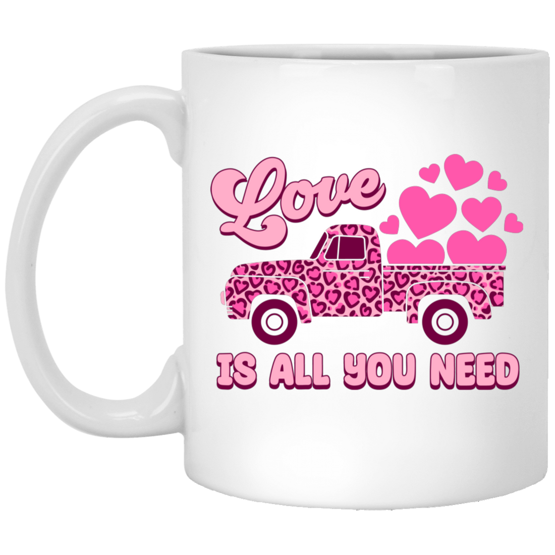 Love Is All You Need, Truck Drive Heart, Car Bring My Love, Valentine's Day, Trendy Valentine White Mug