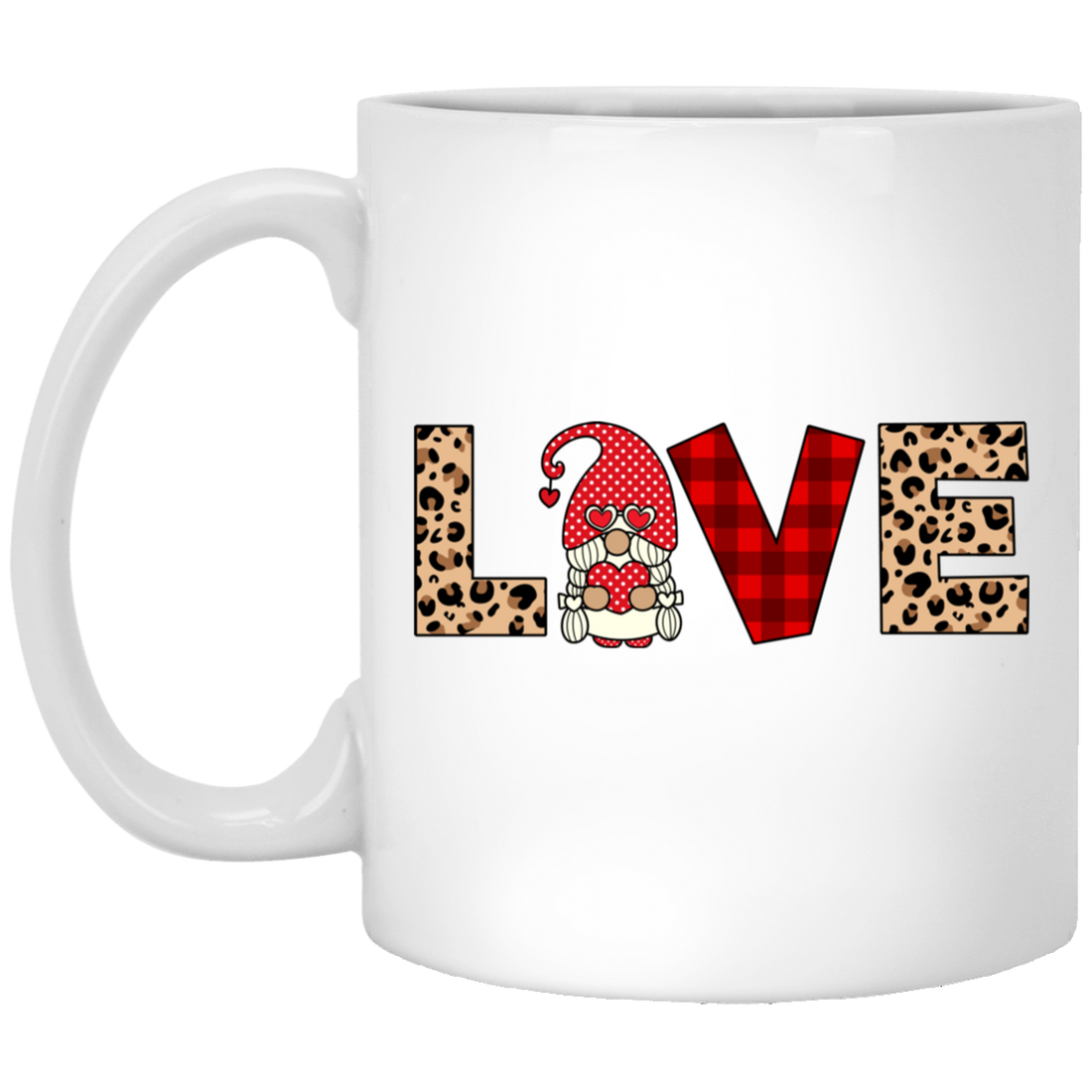 Love Text Design, Red Gnome, Leopard Pattern, Valentine's Day, Trendy Valentine White Mug