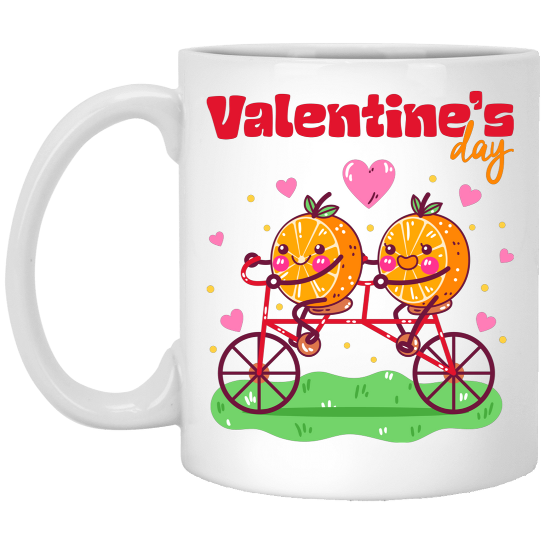 Valentine's Day, Trendy Valentine, Orange Couple, Orange Ride A Bike White Mug