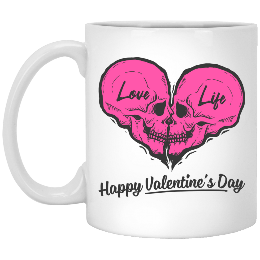 Love Life, Happy Valentine's Day, Skull In Heart Shape, Valentine's Day, Trendy Valentine White Mug
