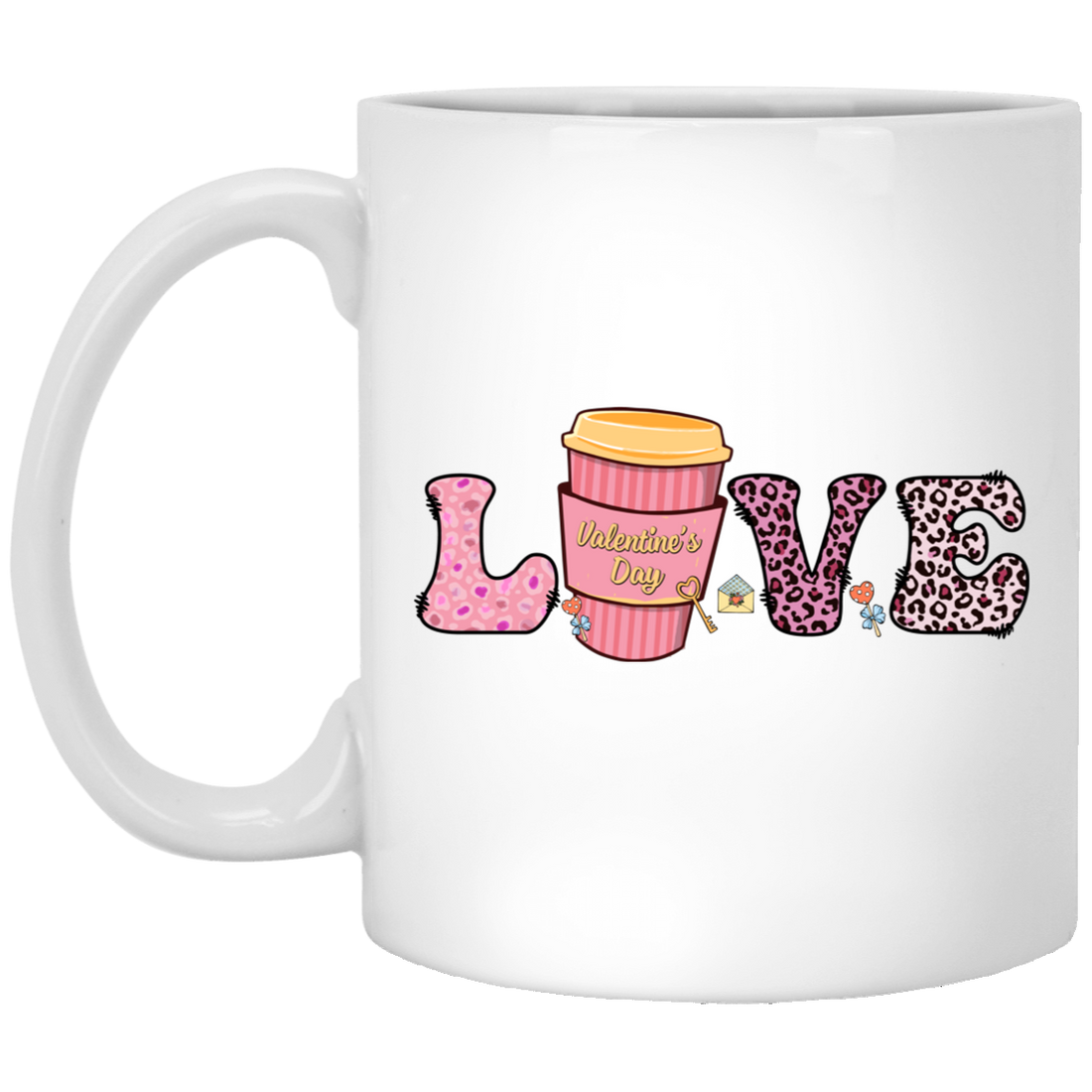Love Valentine, Leopard Lover, Pink Cup Of Coffee, Valentine's Day, Trendy Valentine White Mug