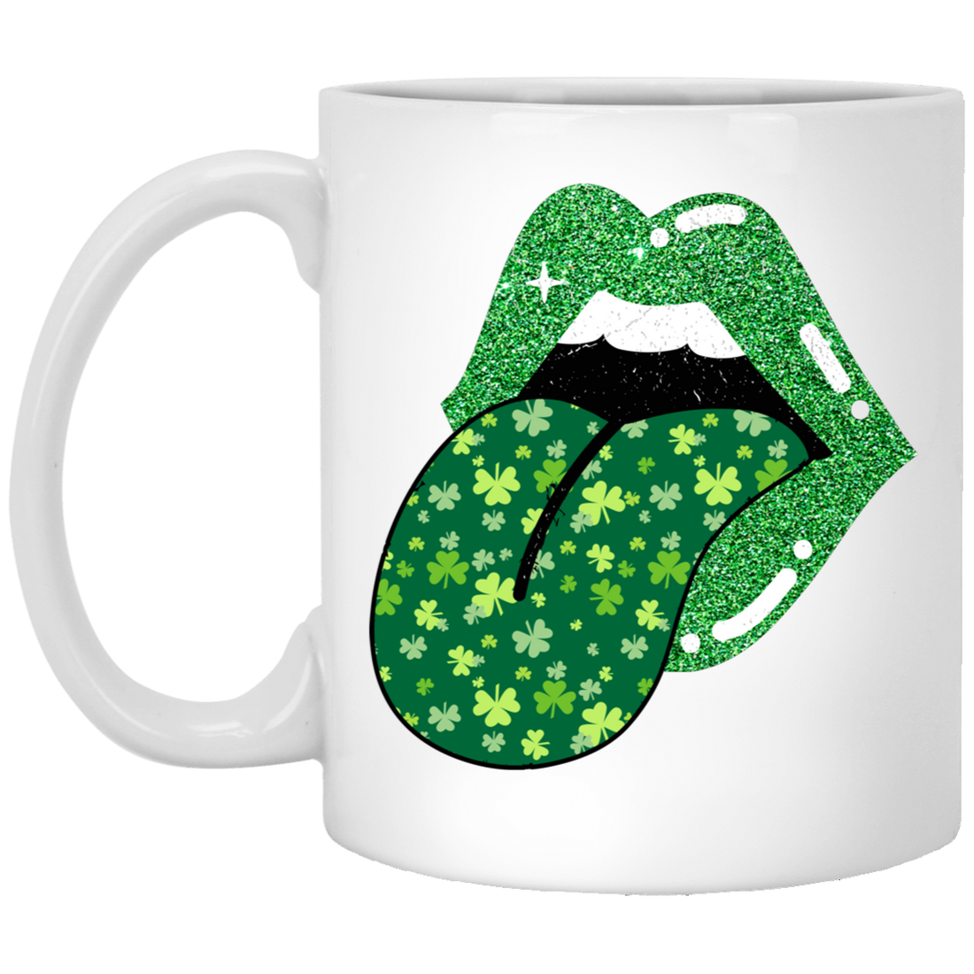 Patrick Lips, Patrick Glitter, St. Patrick's Day, Patrick Leaves White Mug