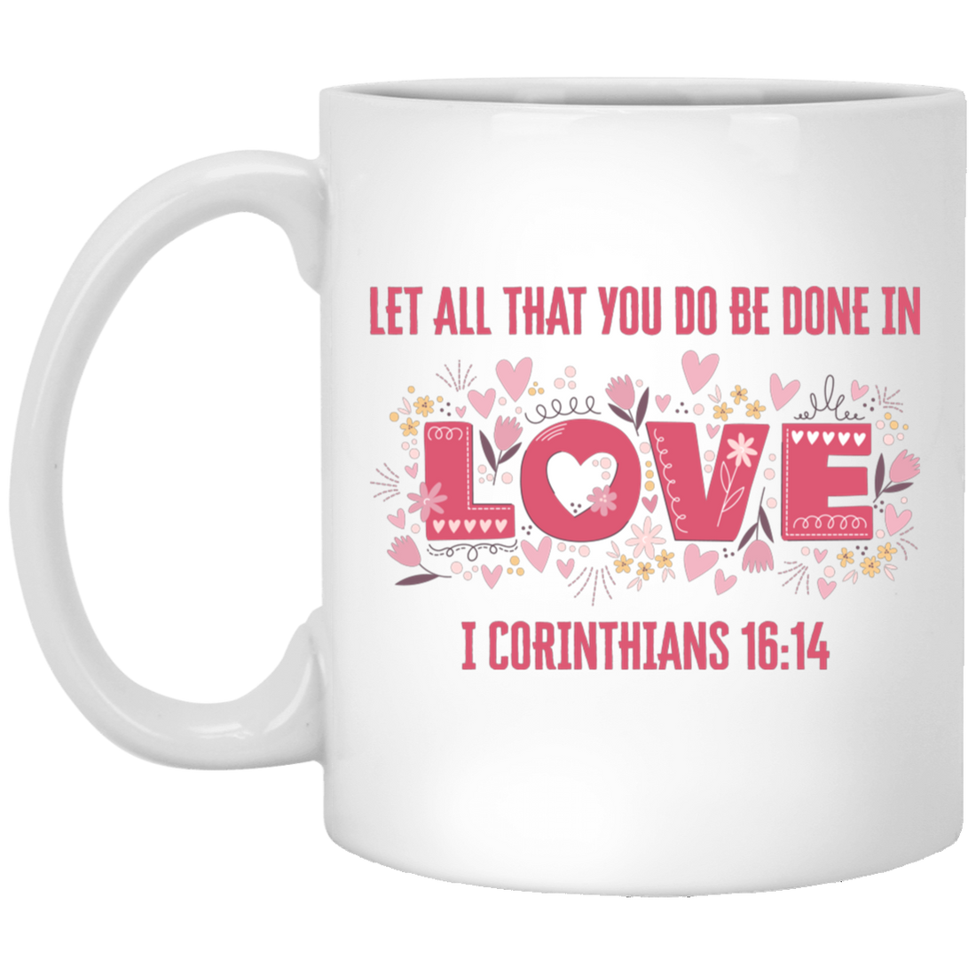 Let All That You Do Be Done In Love, I Corinthians 16_14, Valentine's Day, Trendy Valentine White Mug