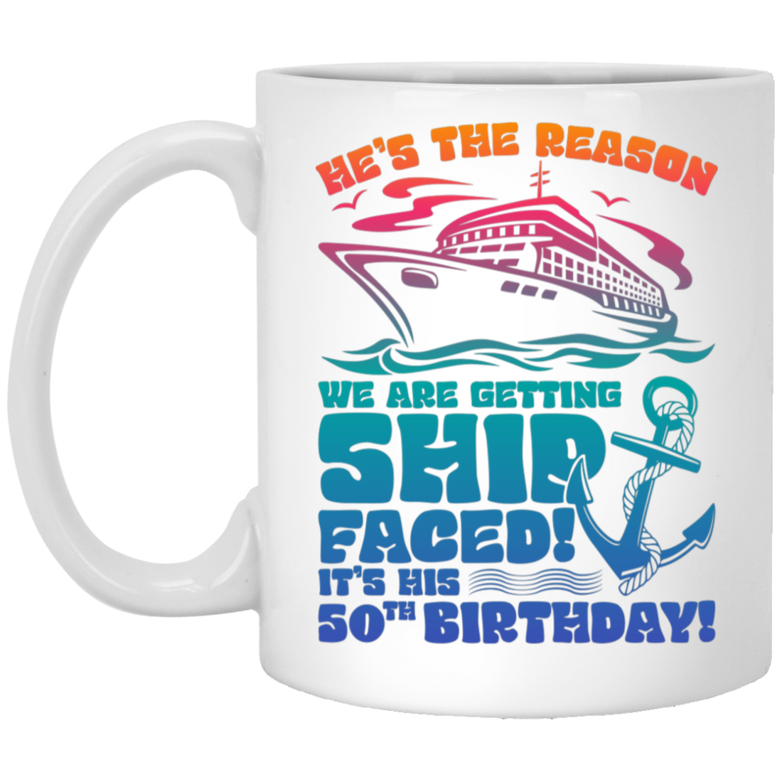 He's The Reason We Are Getting Ship Faced, It's His 50th Birthday White Mug