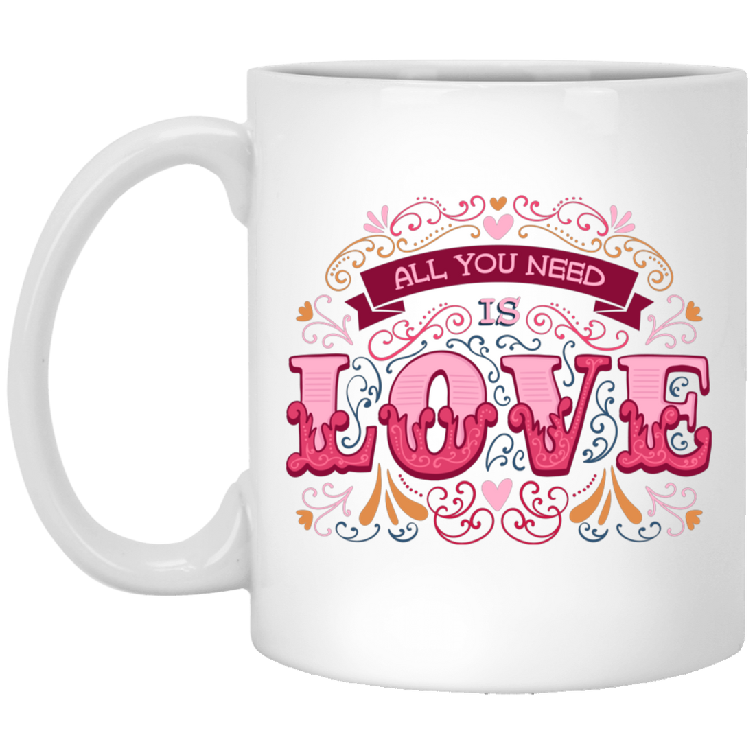 All You Need Is Love, All I Need Is Love, I Need Love, Valentine's Day, Trendy Valentine White Mug