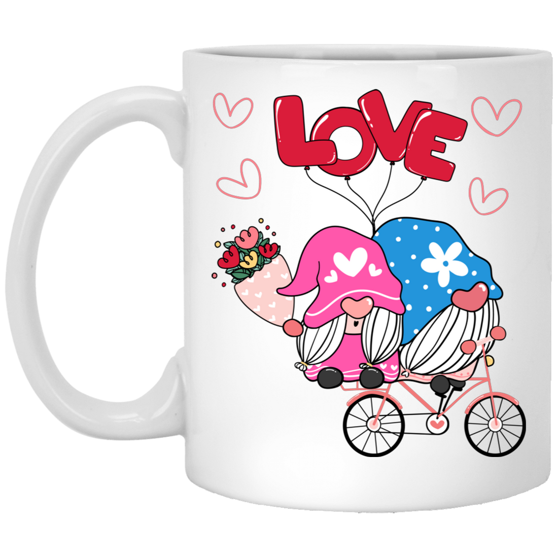 Cute Gnome, Gnome Couple, Gnome Ride A Bike With Love, Valentine's Day, Trendy Valentine White Mug