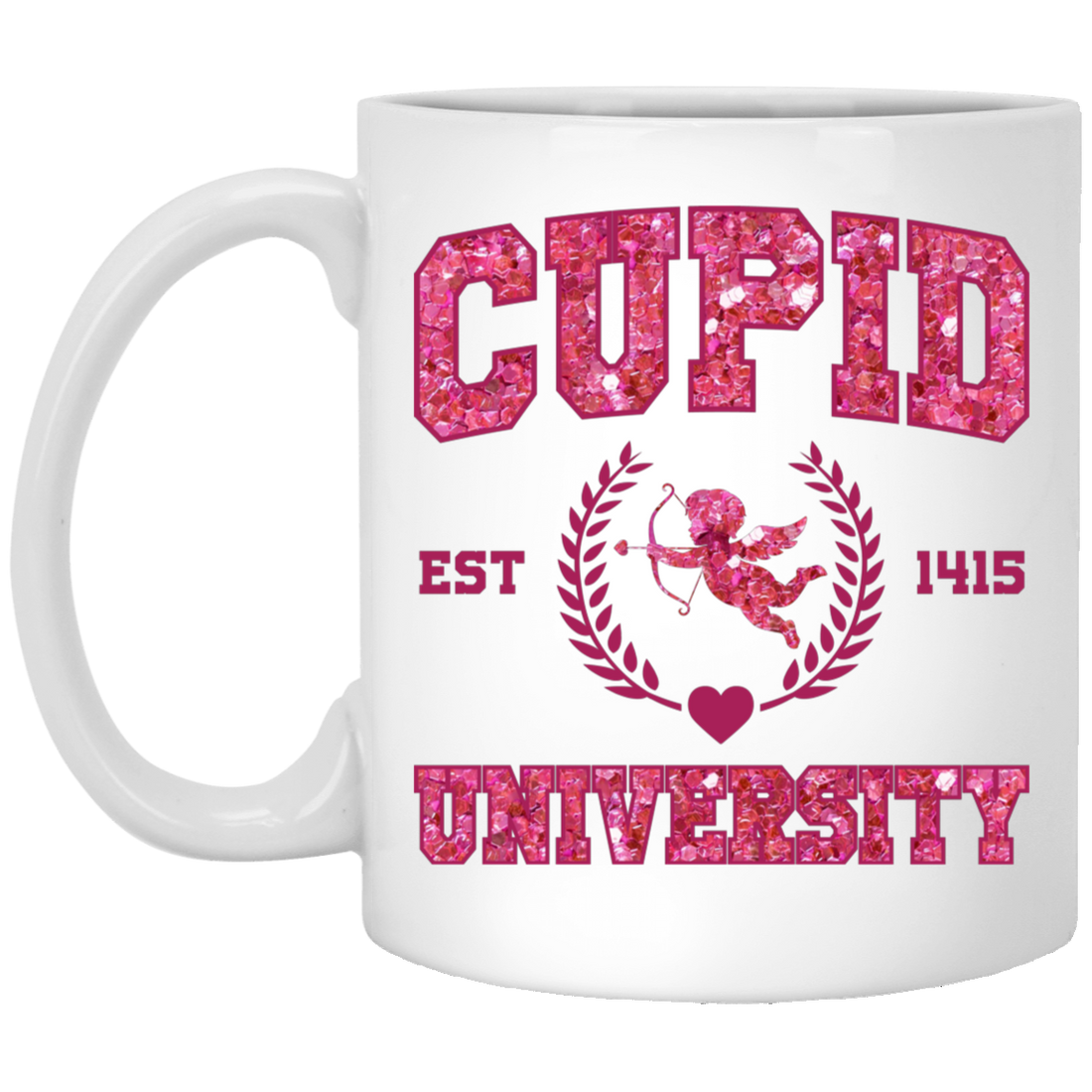 Cupid University, Est 1415, Pink Glitter Cupid, Glitter Valentine, Valentine's Day, Trendy Valentine White Mug
