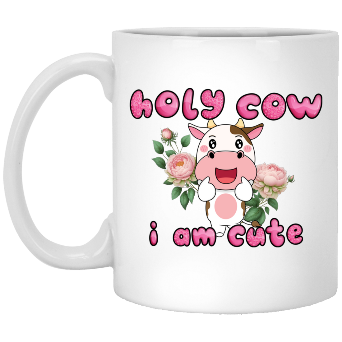 Holy Cow, I Am Cute, Cute Cow, Flower With Cow, Lovely Cow, Merry Christmas, Trendy Chrismas White Mug
