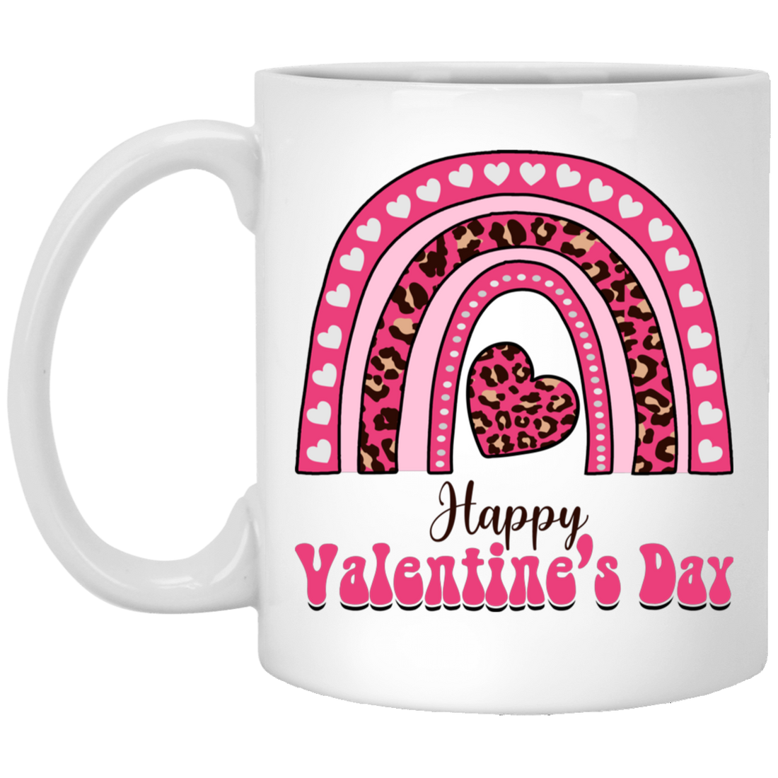 Happy Valentine's Day, Pink Rainbow, Leopard Valentine, Valentine's Day, Trendy Valentine White Mug