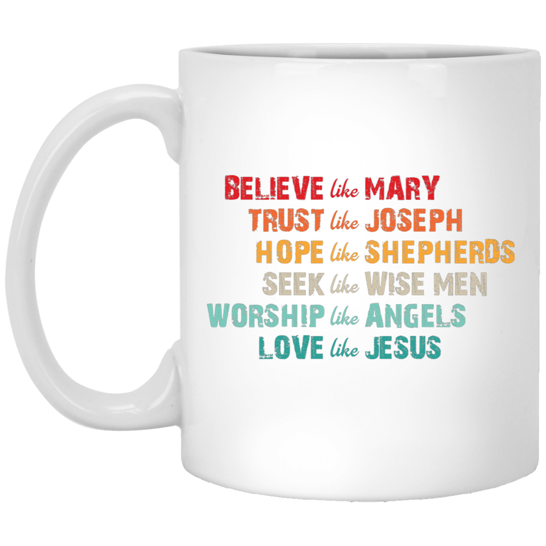 Believe Like Mary, Trust Like Joseph, Hope Like Shepherds White Mug