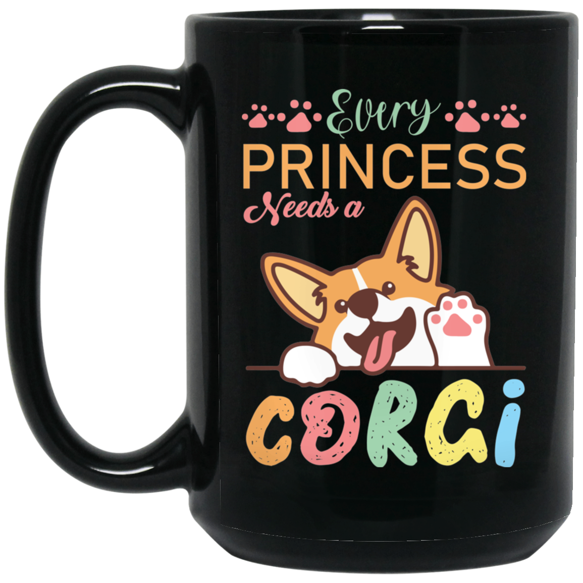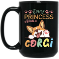Every Princess Needs A Corgi, Cute Corgi Dog Black Mug