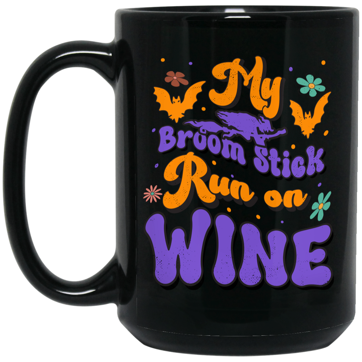 Fly Broom Stick, Run On Wine, Halloween's Day Black Mug