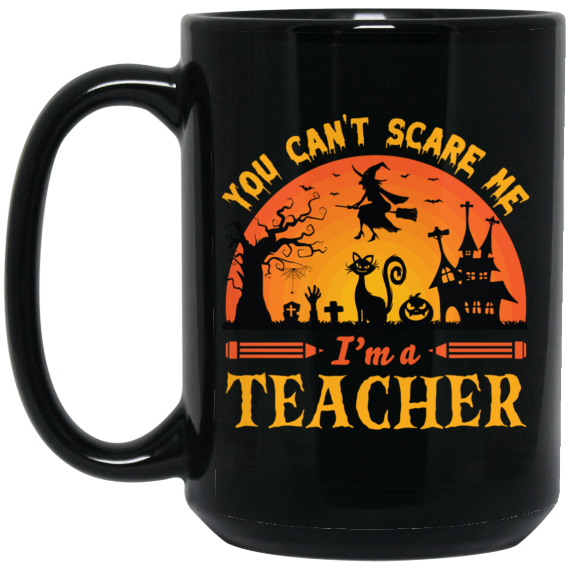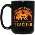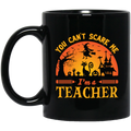 You Can't Scare Me, I'm A Teacher, Witch And Horror Cat Black Mug