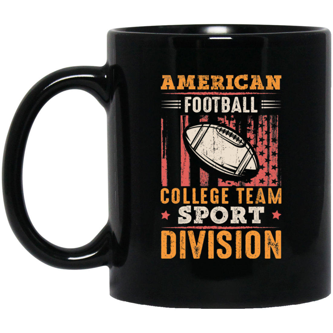 American Football Gift, College Team Sport Dividion, Football Team Black Mug