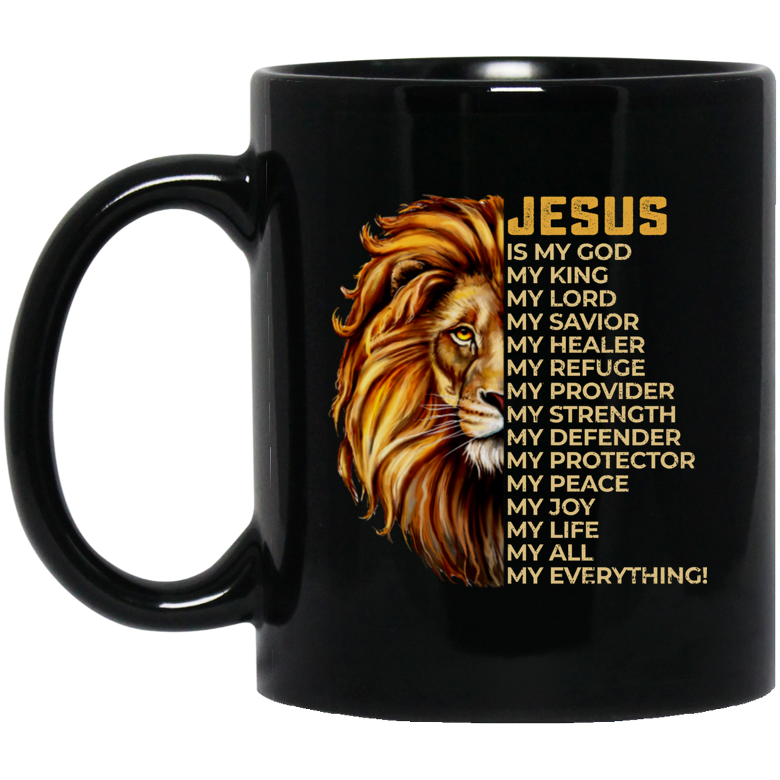 Christian Quotes Jesus Is My Everything, Lion Jesus, Love Christ Black Mug