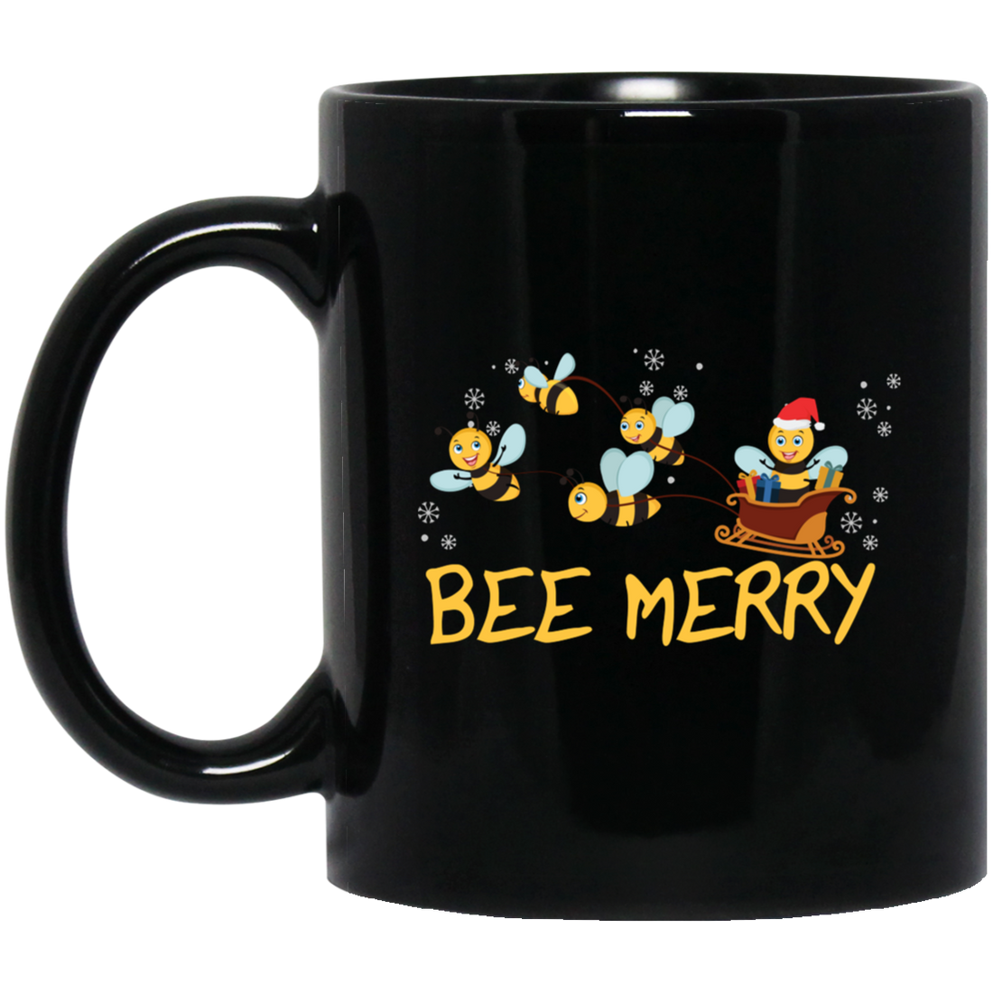 Bee Merry, Cute Bee, Funny Bee, Bee Christmas, Merry Christmas, Trendy Christmas Black Mug