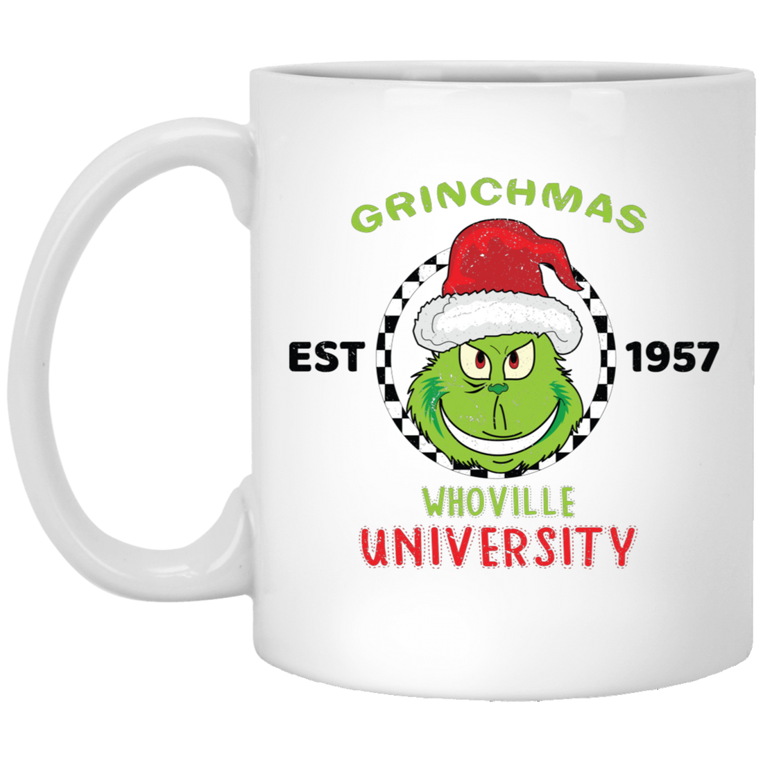Grinchmas Whoville University, Est 1957, Grinch Xmas, Merry Christmas, Trendy Christmas White Mug