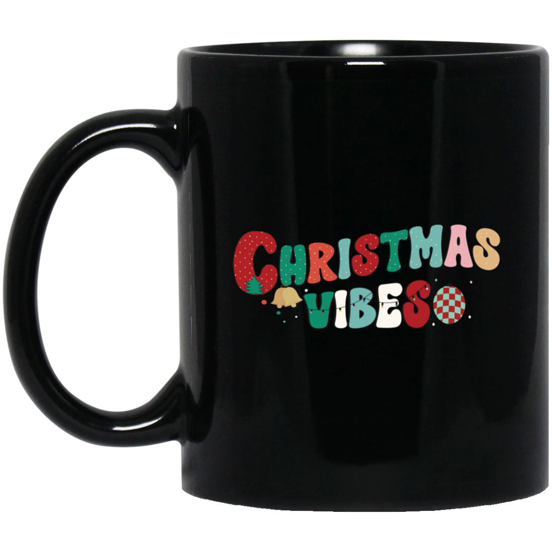 Christmas Vibes, Retro Christmas, Merry Christmas, Trendy Christmas Black Mug