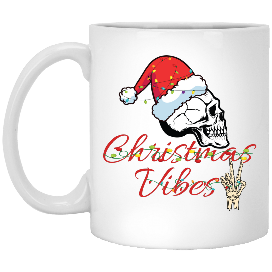 Christmas Vibes, Skull In Christmas, Skull Wear Christmas Hat, Merry Christmas, Trendy Christmas White Mug
