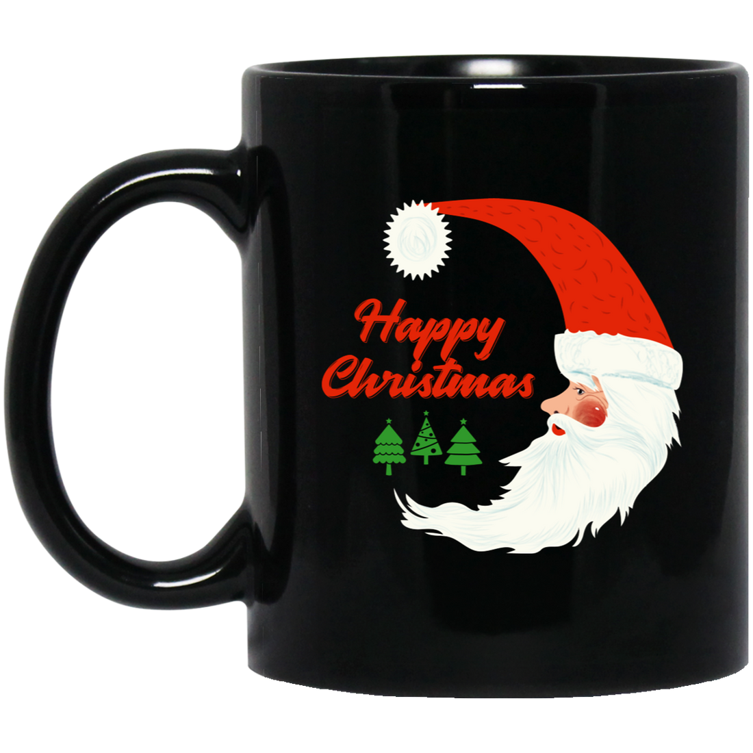 Happy Christmas, Santa In Moon, Christmas Tree, Merry Christmas, Trendy Christmas Black Mug