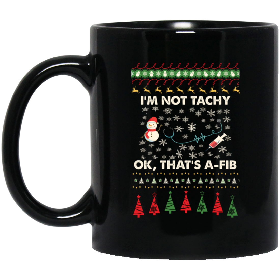 I'm Not Tachy, Ok That's A Fib, Merry Christmas, Trendy Christmas Black Mug