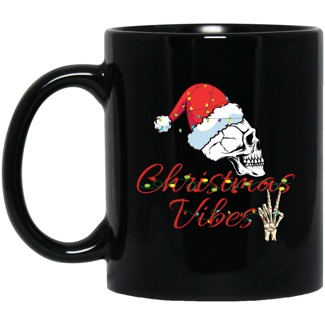 Christmas Vibes, Skull In Christmas, Skull Wear Christmas Hat, Merry Christmas, Trendy Christmas Black Mug