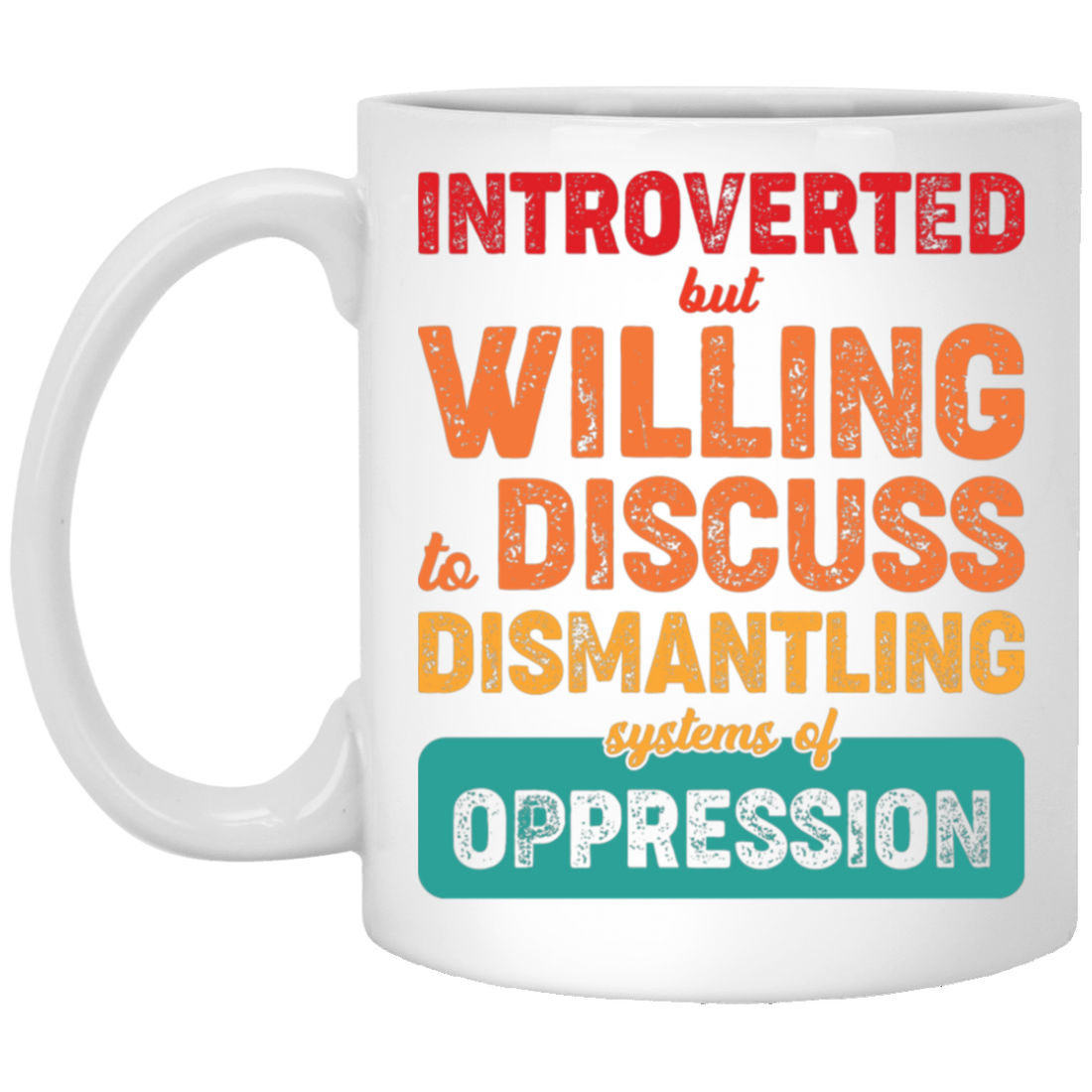 Introverted But Willing To Discuss Dismantling Systems Of Oppression White Mug