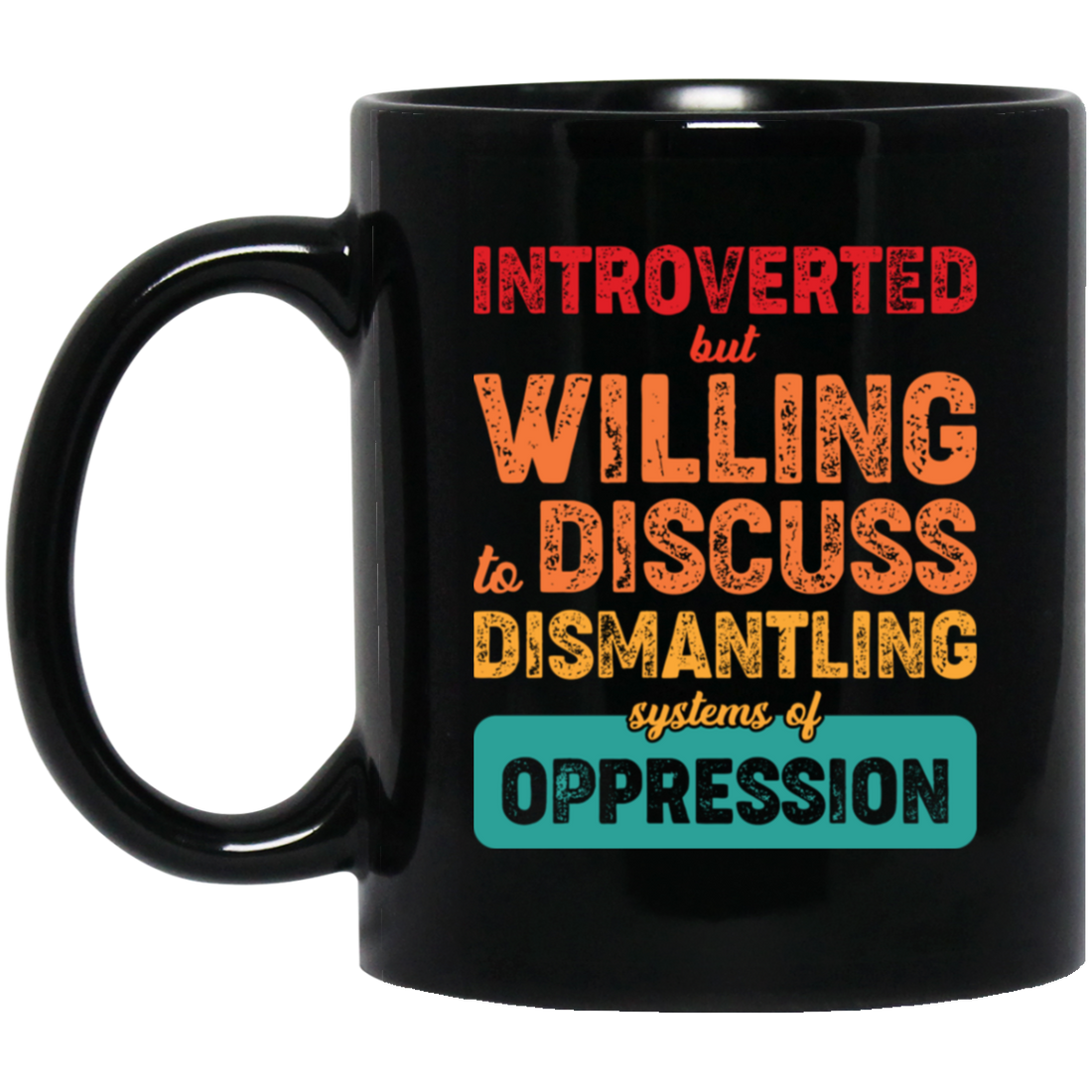 Introverted But Willing To Discuss Dismantling Systems Of Oppression Black Mug