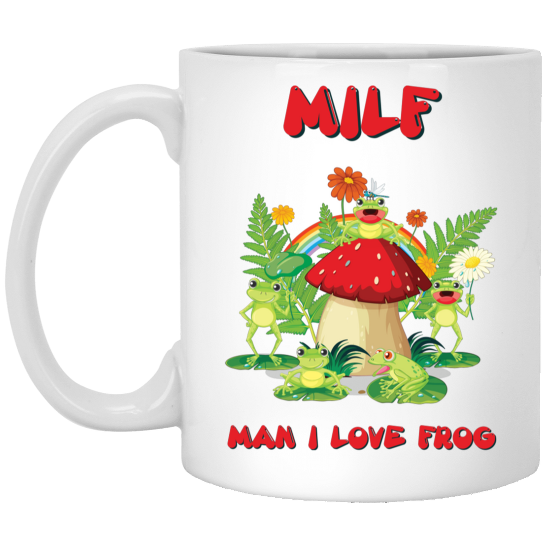 MILF, Man I Love Frog, Frogs And Mushrooms, Funny Frogs White Mug