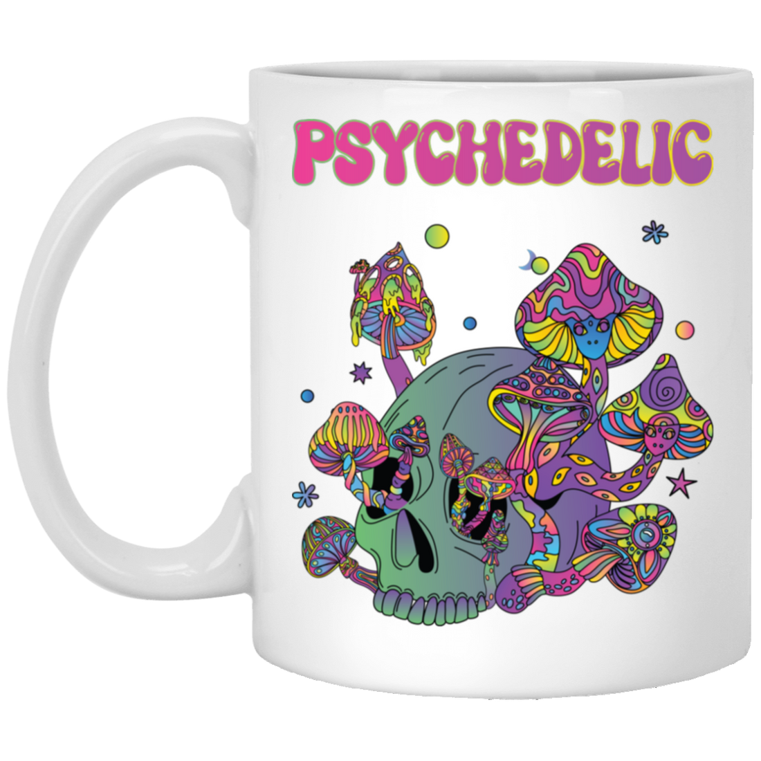 Psychedelic, Magic Mushroom, Mushroom And Skull Psycho White Mug