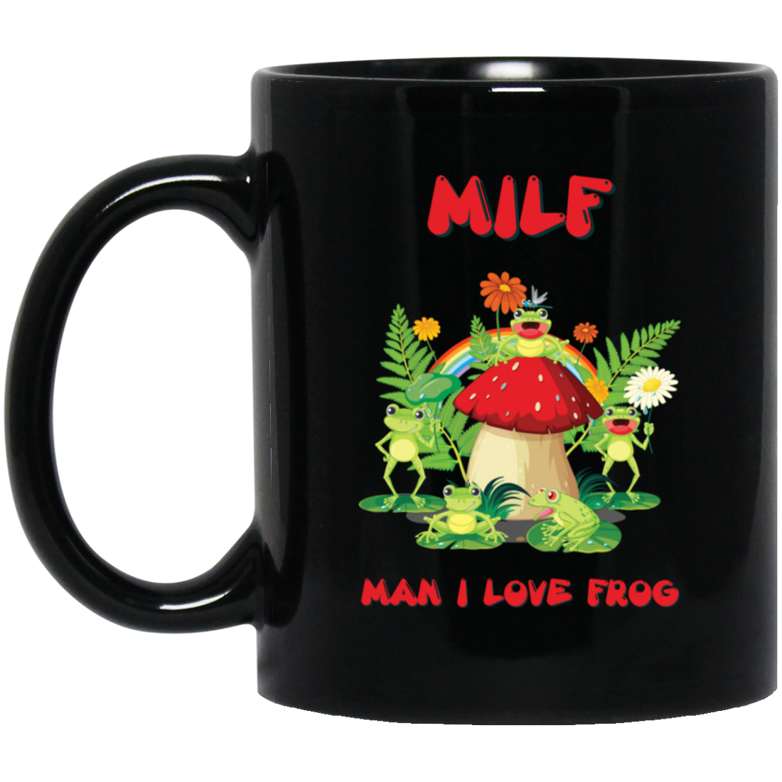 MILF, Man I Love Frog, Frogs And Mushrooms, Funny Frogs Black Mug