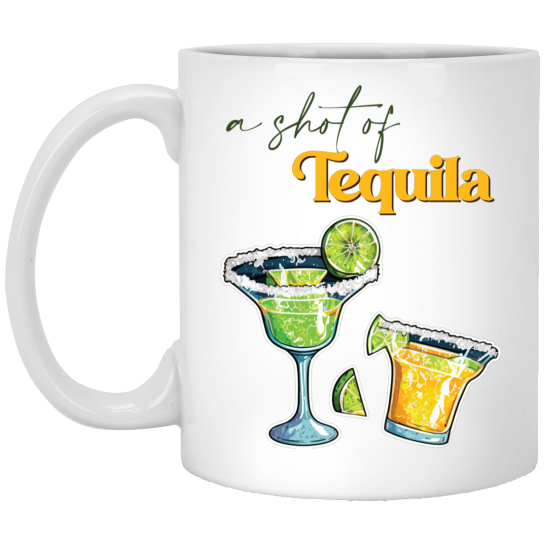 A Shot Of Tequila, Tequila Wine, Lime And Salt White Mug