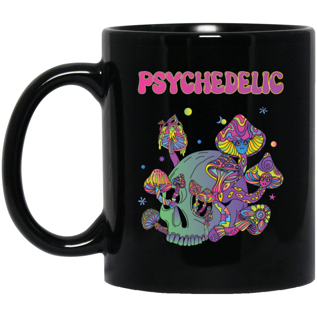 Psychedelic, Magic Mushroom, Mushroom And Skull Psycho Black Mug