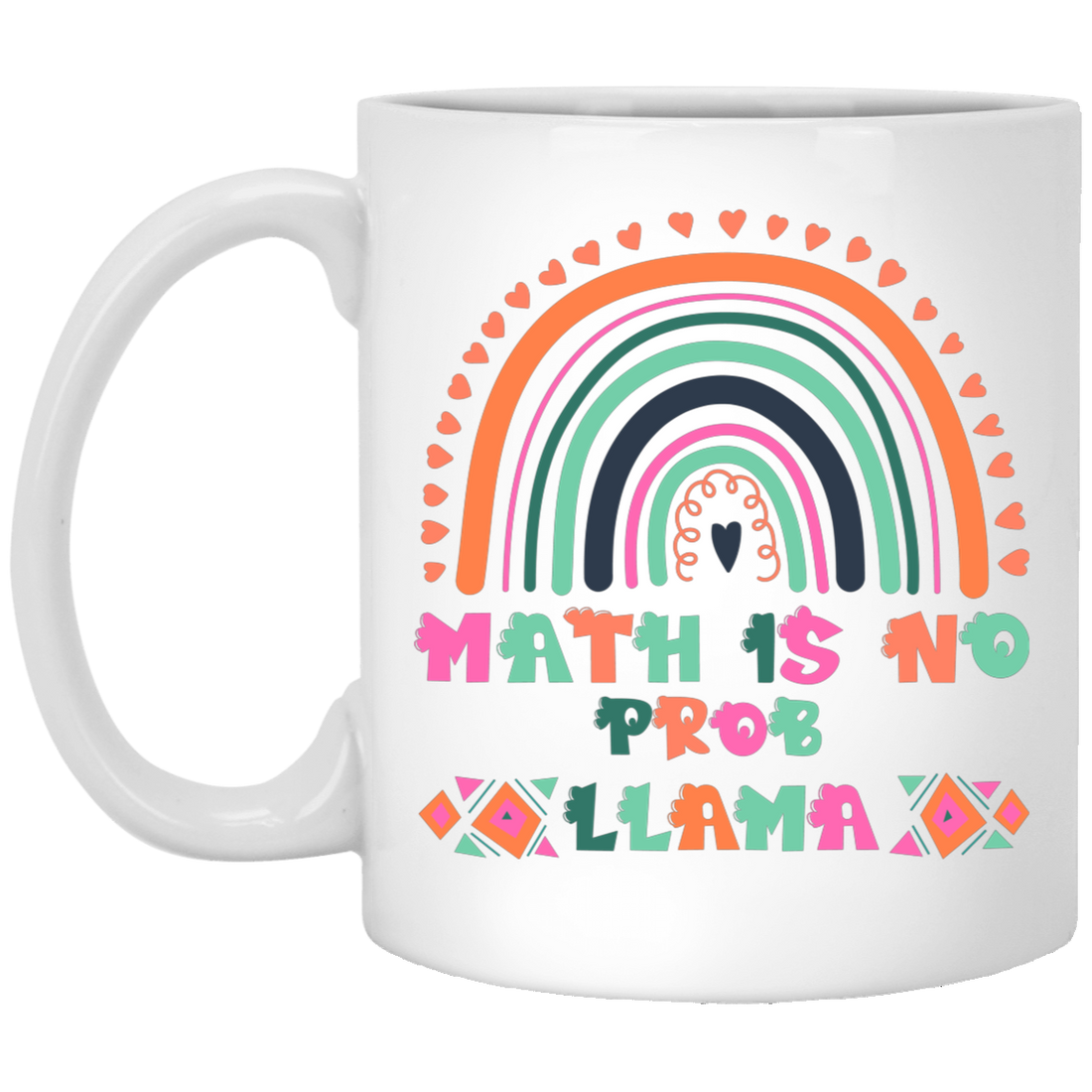 Math Is No Prob-Llama, No Problem, Retro Rainbow White Mug