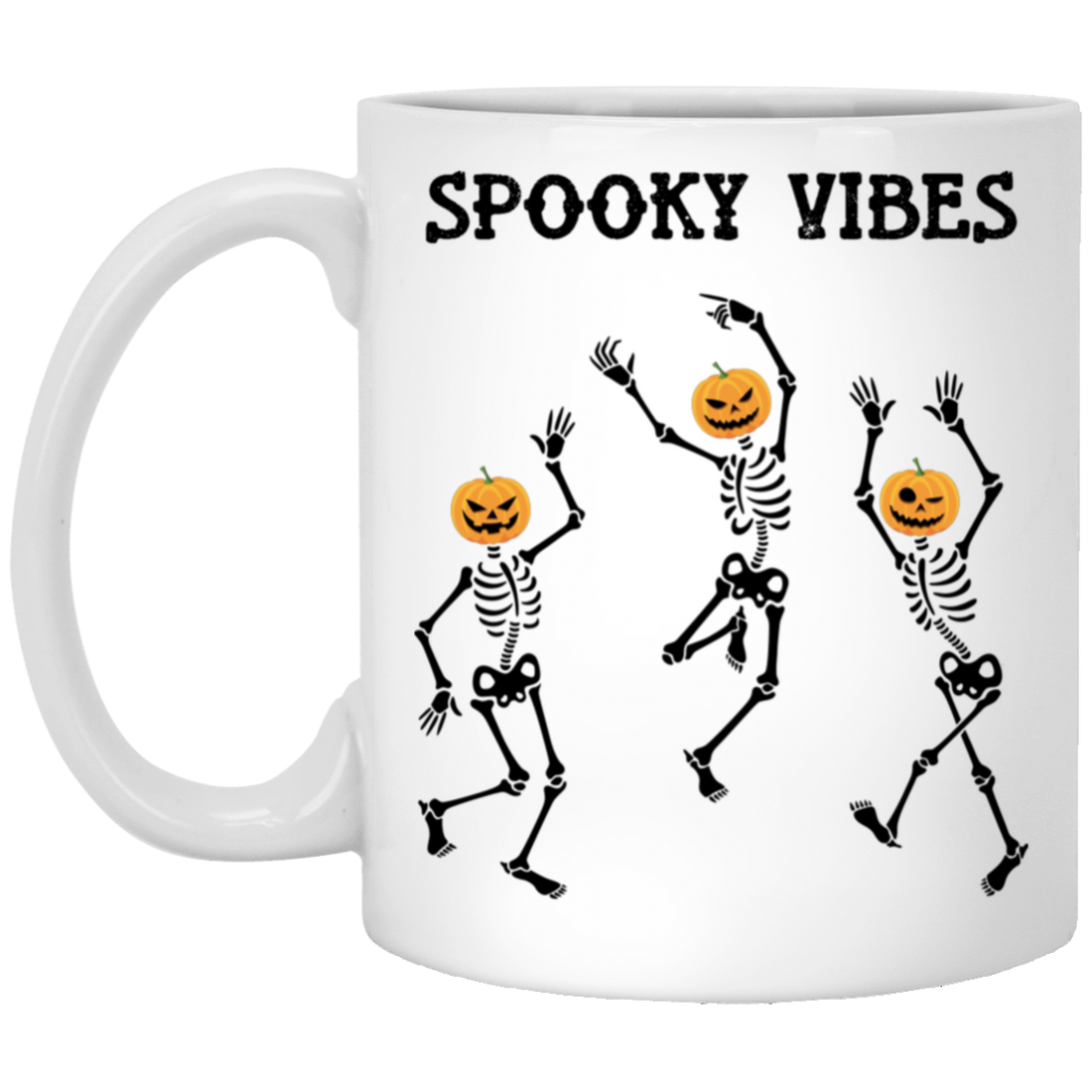 Spooky Vibes, Dancing Skeleton, Happy Halloween White Mug